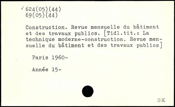 Construction. Revue mensuelle du bâtiment et des travaux publics. [Tidl.tit.: La technique moderne-construction. Revue mensuelle du bâtiment et des travaux publics]