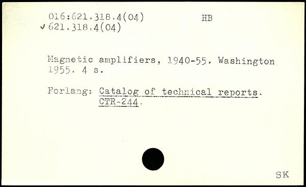 Magnetic amplifiers, 1940-55. Washington Forlang: Catalog of technical reports. CTR-244.