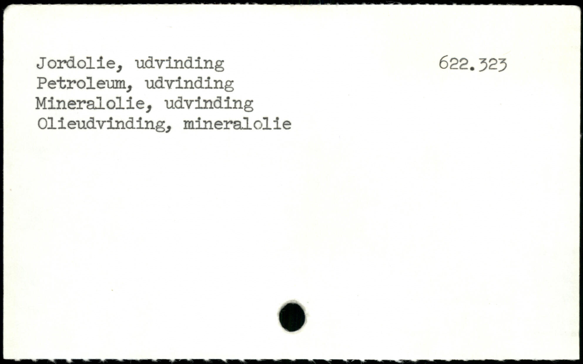 Jordolie, udvinding 622.323 Petroleum, udvinding Mineralolie, udvinding Olieudvinding, mineralolie
