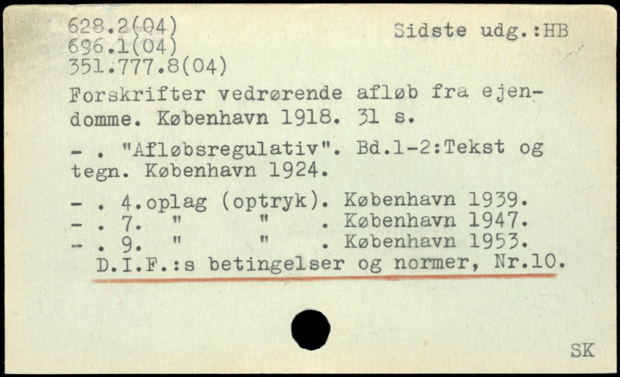 628.2704) Sidste udg.:HB 696.1(04) 351.777.8(04) Forskrifter vedrørende afløb fra ejendomme.