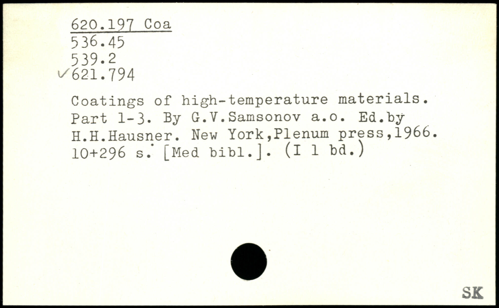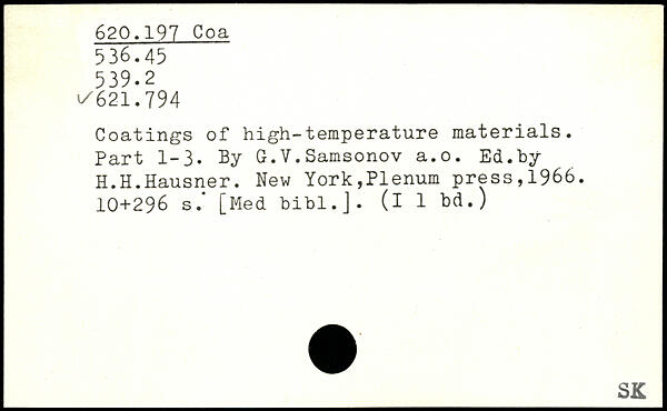 Coatings of high-temperature materials. Part 1-3. By G.Y.Samsonov a.o. Ed.by H.H.Hausner.