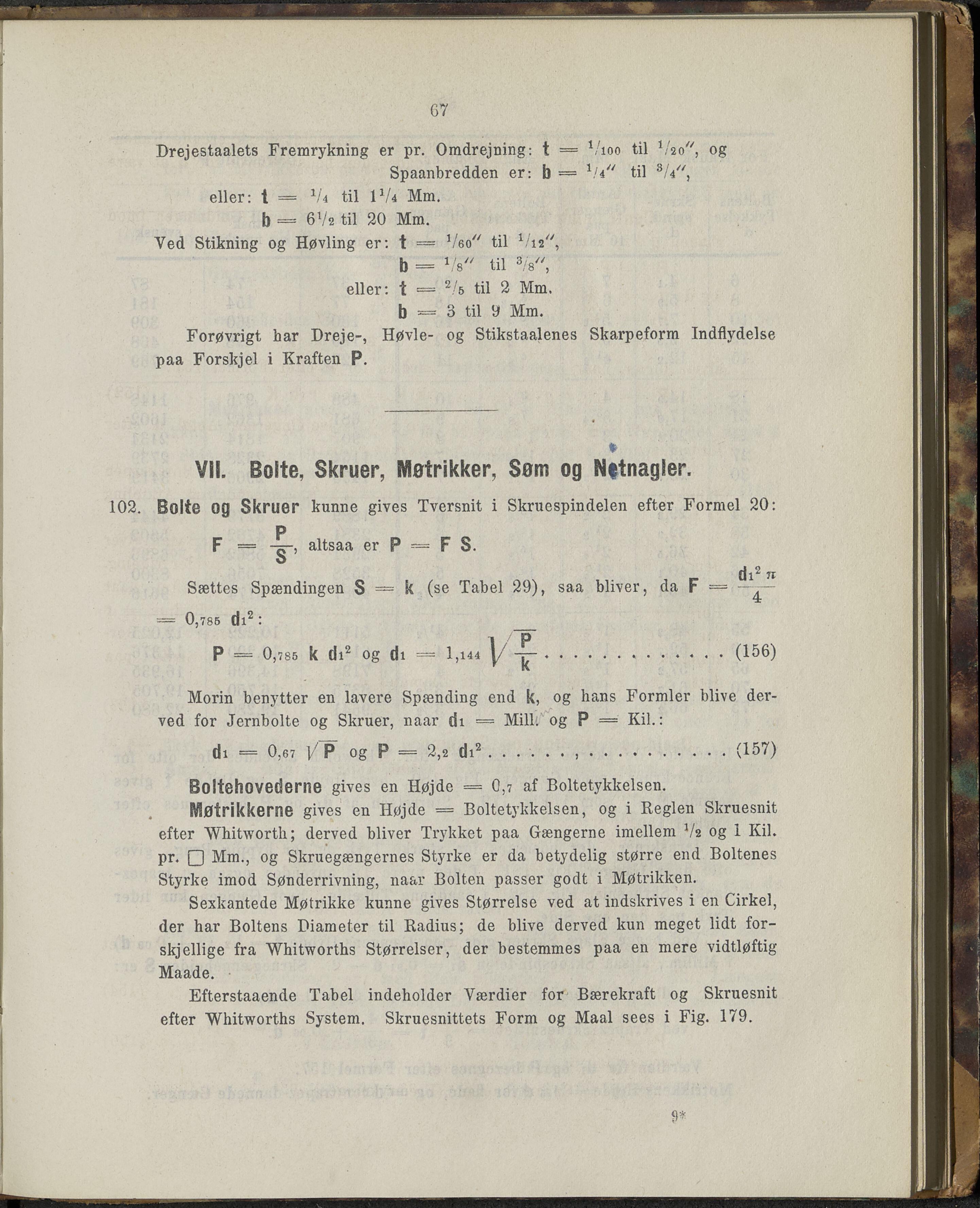 102. Bolte og Skruer kunne gives Tversnit i Skruespindelen efter Formel 20: