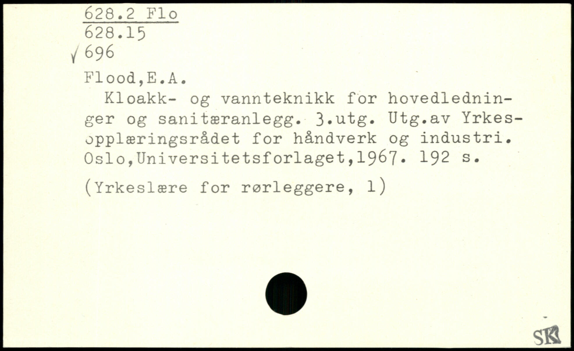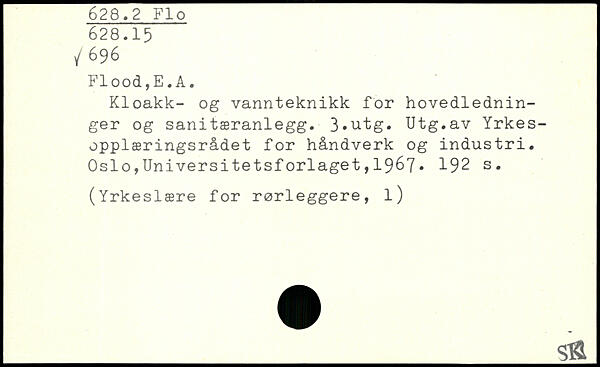 Kloakk- og vannteknikk for hovedlednin-ger og sanitæranlegg. 3,utg. Utg.av Yrkes-opplæringsrådet for håndverk og industri.