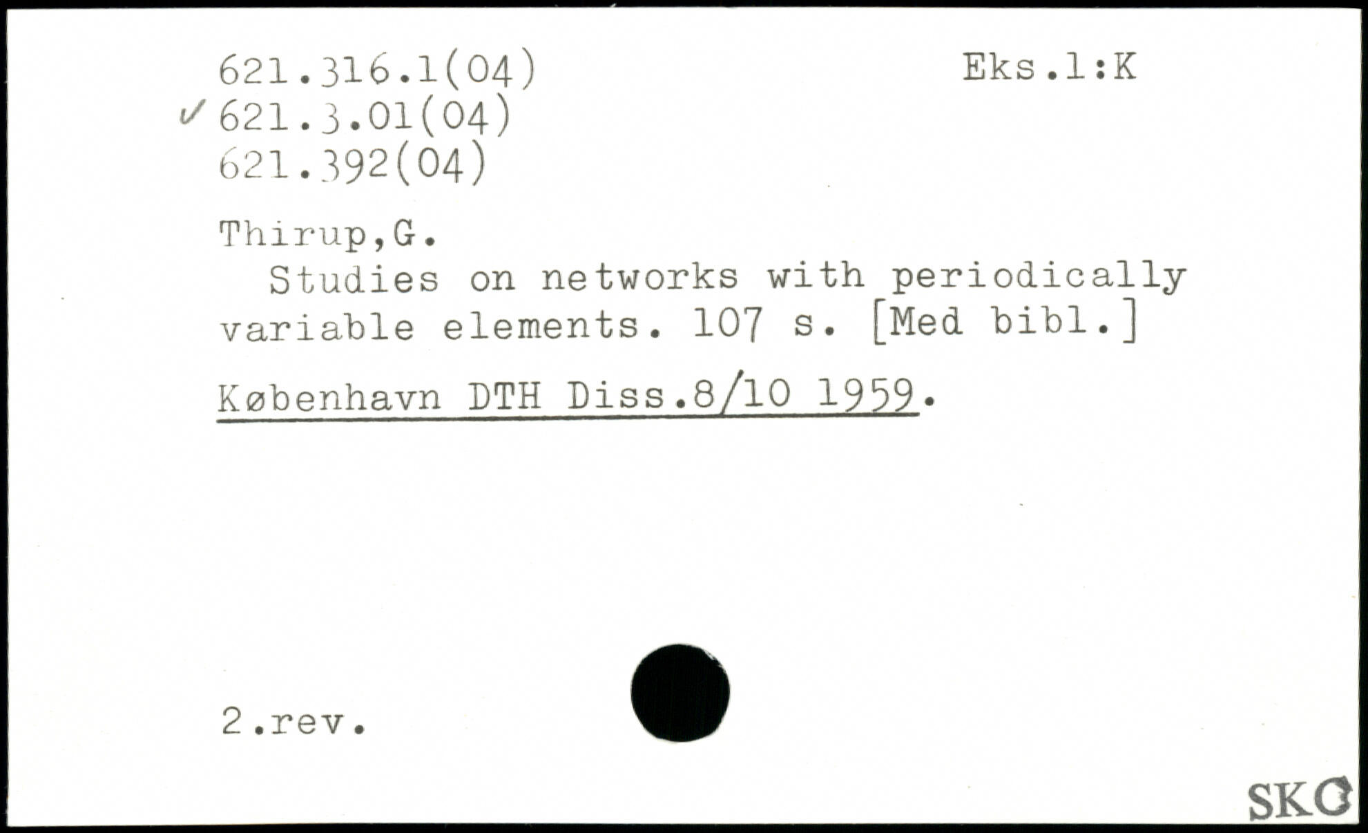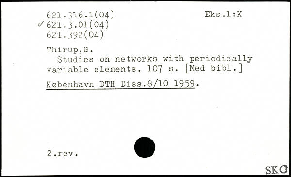 Studies on networks with periodically variable elements. 107 [Med bibl.] København DTH Diss.8/l0 1939