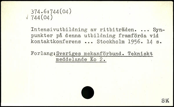 Intensivutbildning av ritbiträden. ... Synpunkter på denna utbildning framförda vid kontaktkonferens ...
