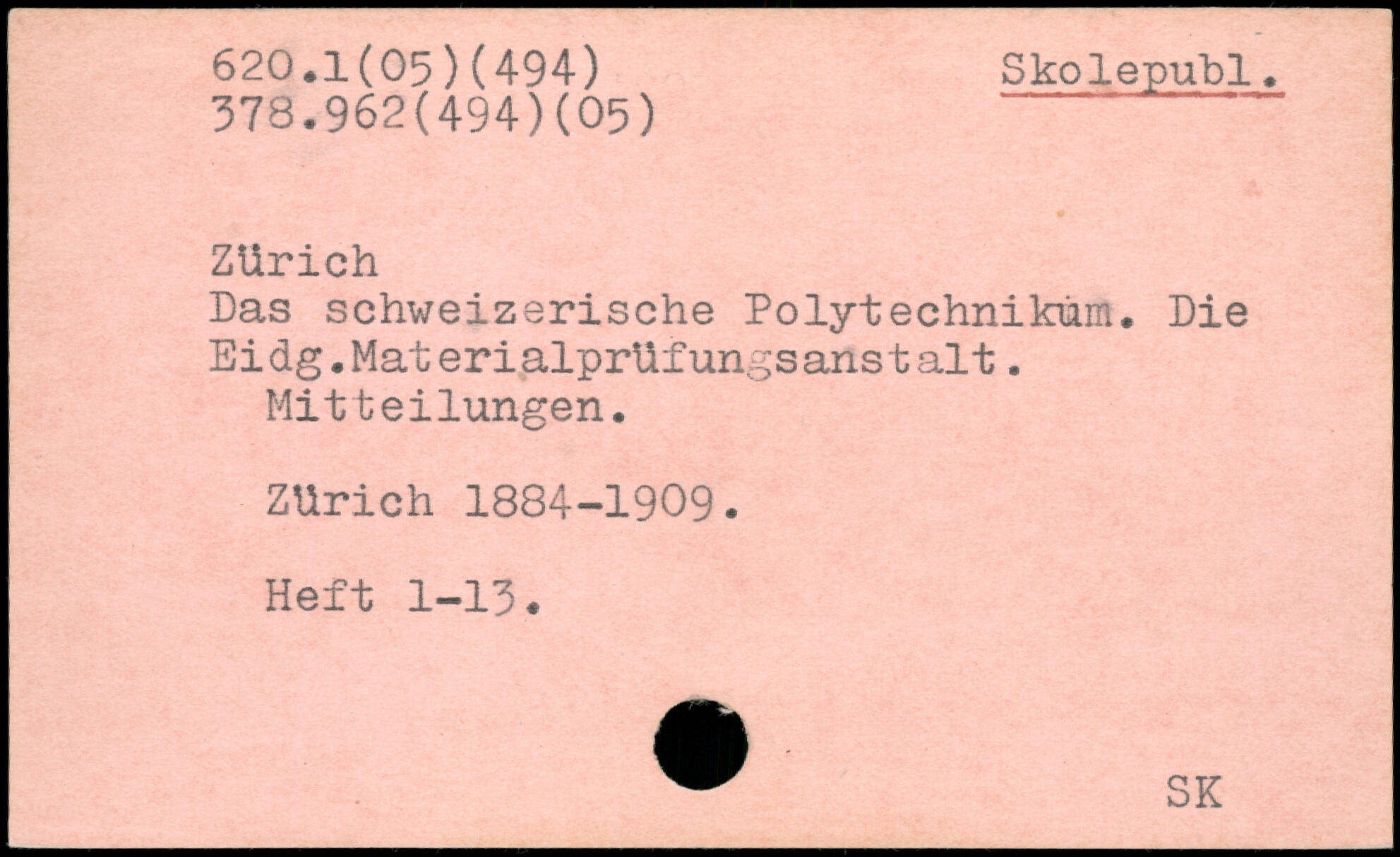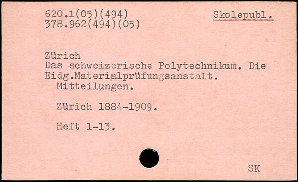 Das schweizerische Polytechnikum. Die Eidg.Materialprüfungsanstatt. Mitteilungen. Zürich 1884-1909. Heft 1-13.