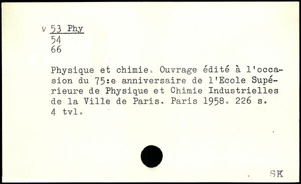Physique et chimie , Ouvrage édité à l’occasion du 75se anniversaire de l’Ecole Supérieure de Physique et Chimie Industrielles de la Ville de Paris