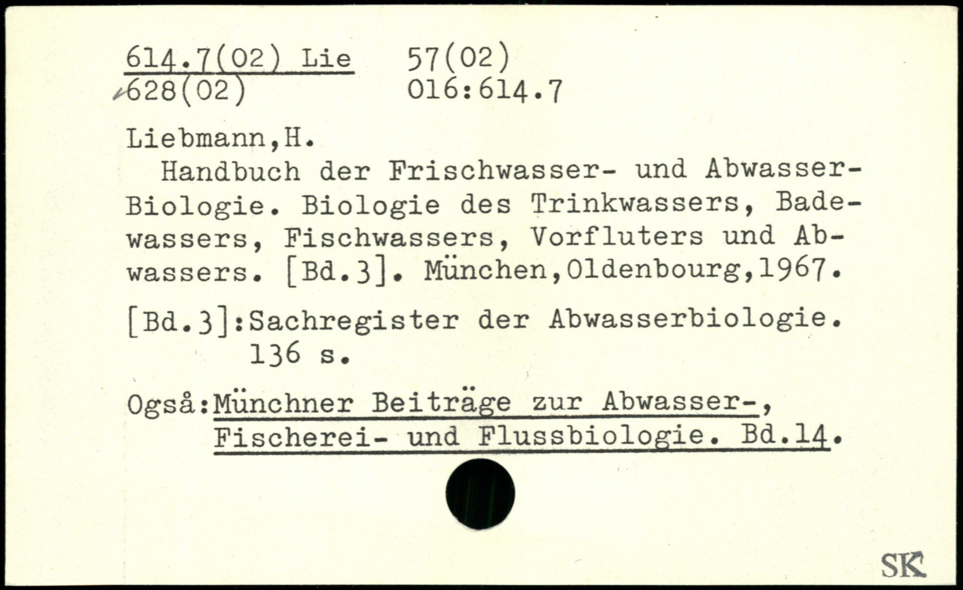 Handbuch der Frischwasser- und Abwasser-Biologie. Biologie des Trinkwassers, Badewassers, Fischwassers, Vorfluters und Abwassers.