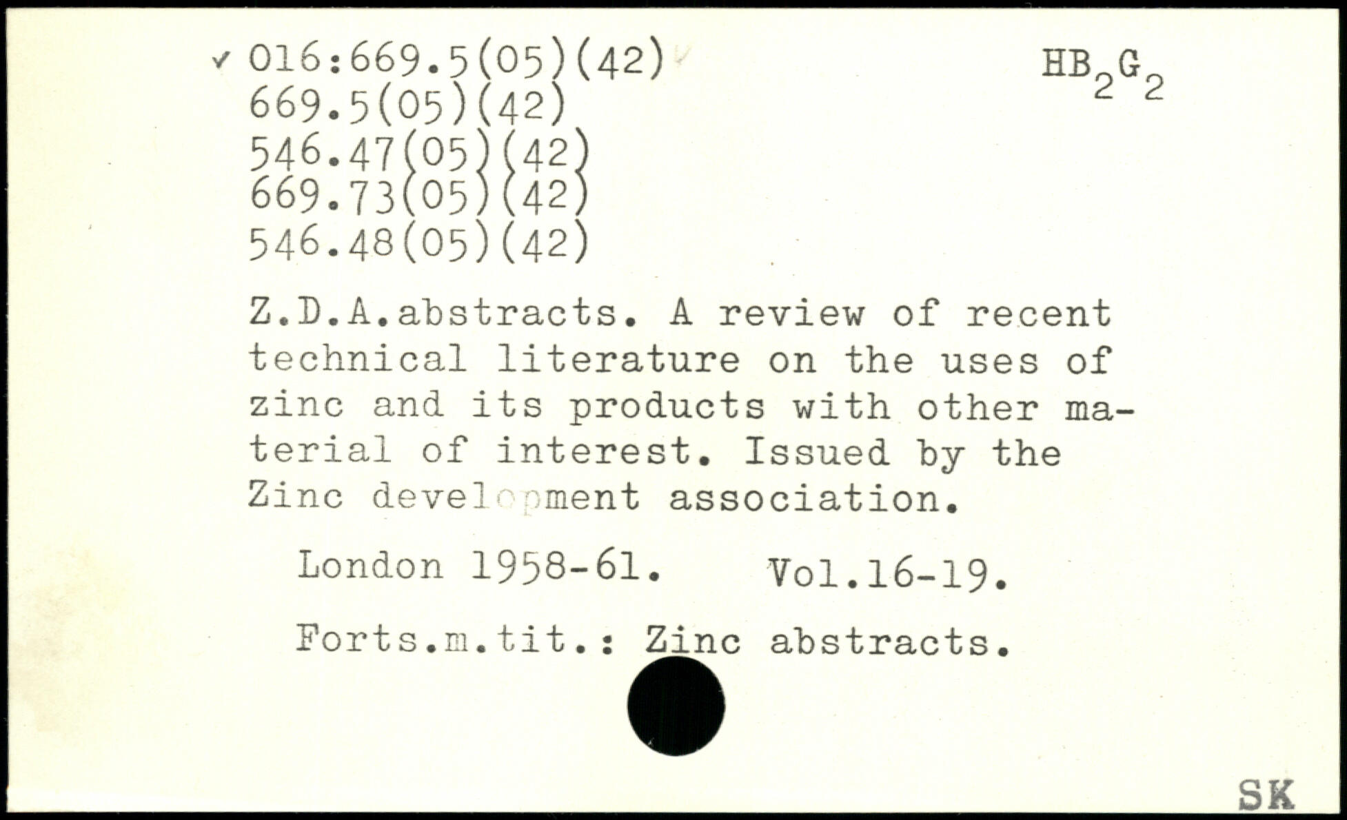 Z.D.A.abstracts. A review of recent technical literature on the uses of zinc and its products with other material of interest. Issued by the Zinc development association.