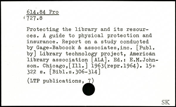Protecting the library and its resources. A guide to physical protection and insurance. Report on a study conducted by Gage-Babcock & associates,inc.