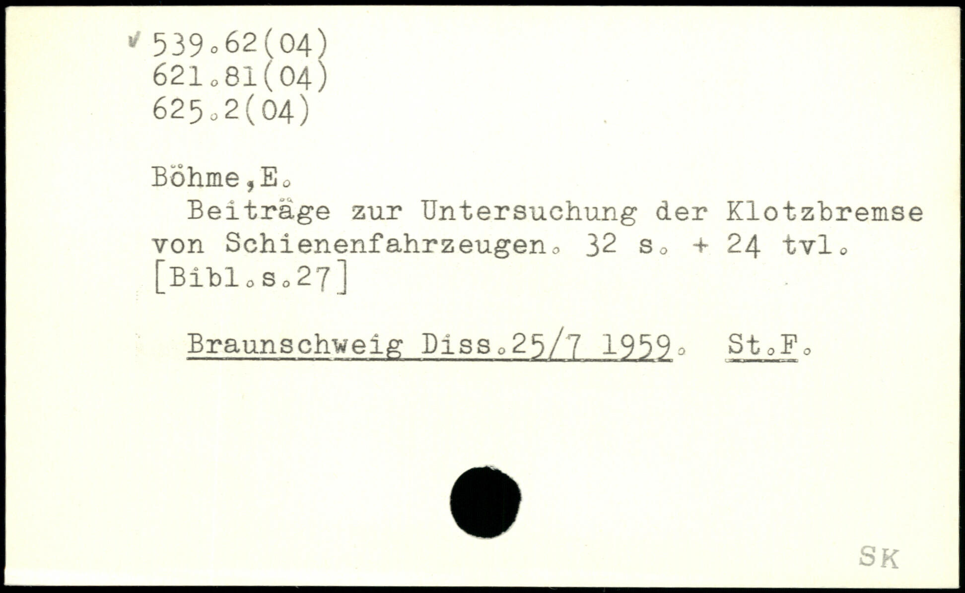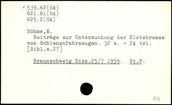 Beiträge zur Untersuchung der Klotzbremse von Schienenfahrzeugeno