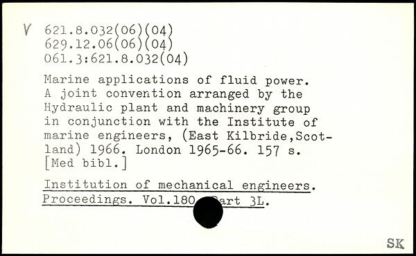 Marine applications of fluid power. A joint convention arranged by the Hydraulic plant and machinery group in conjunction with the Institute of marine engineers, (East Kilbride,Scotland) 1966.