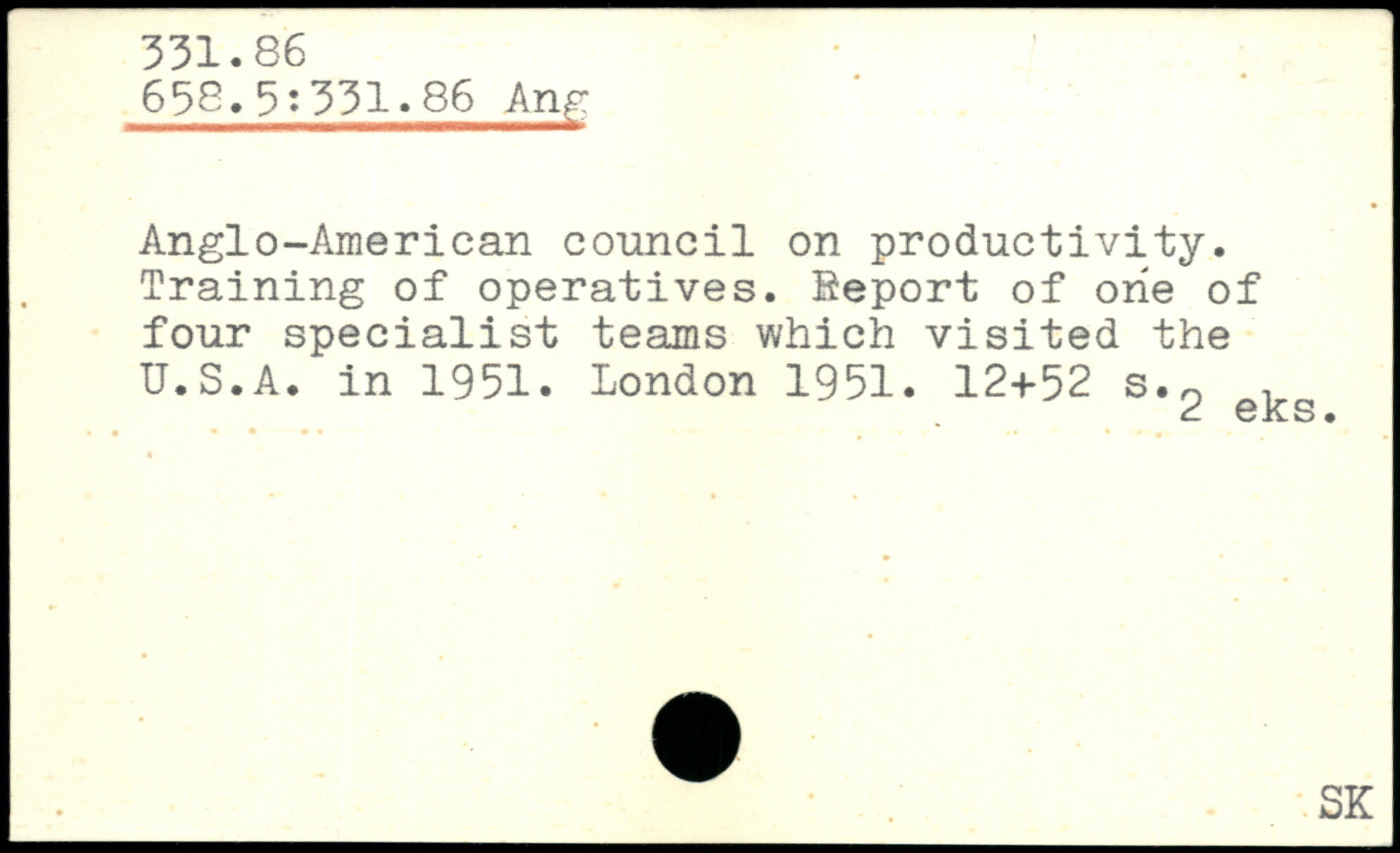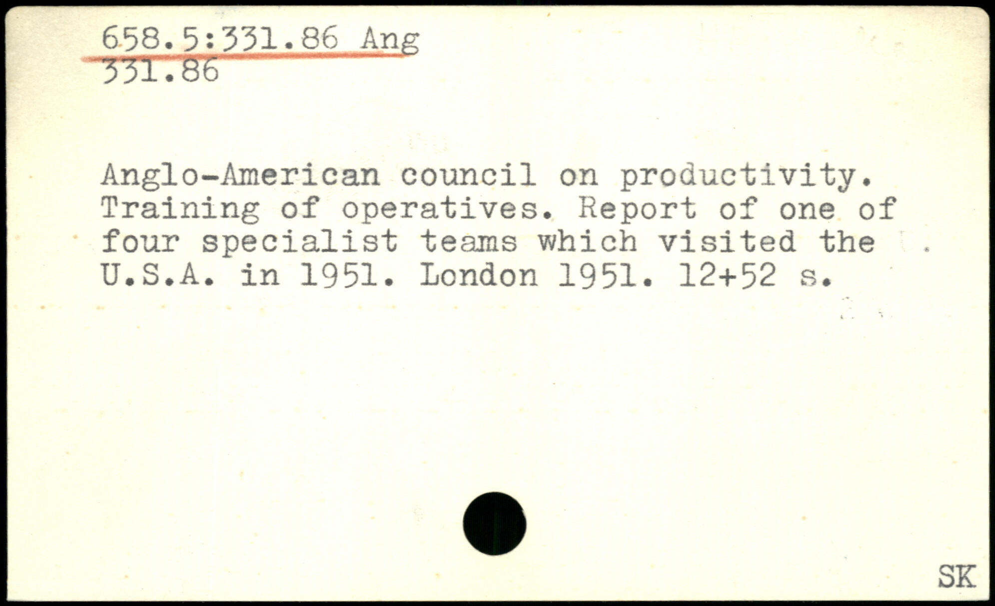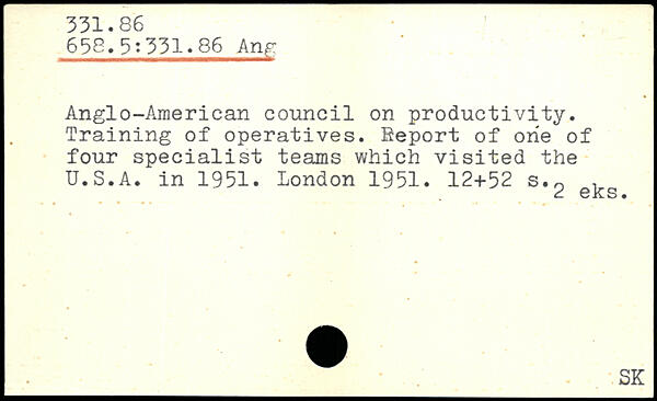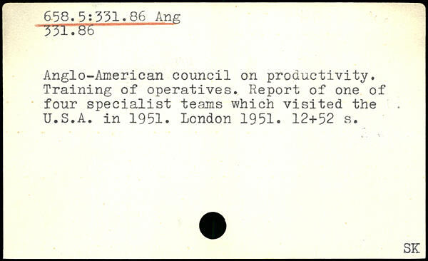 Anglo-American council on productivity. Training of operatives. Report of one of four specialist teams which visited the U.S.A. in 1951.