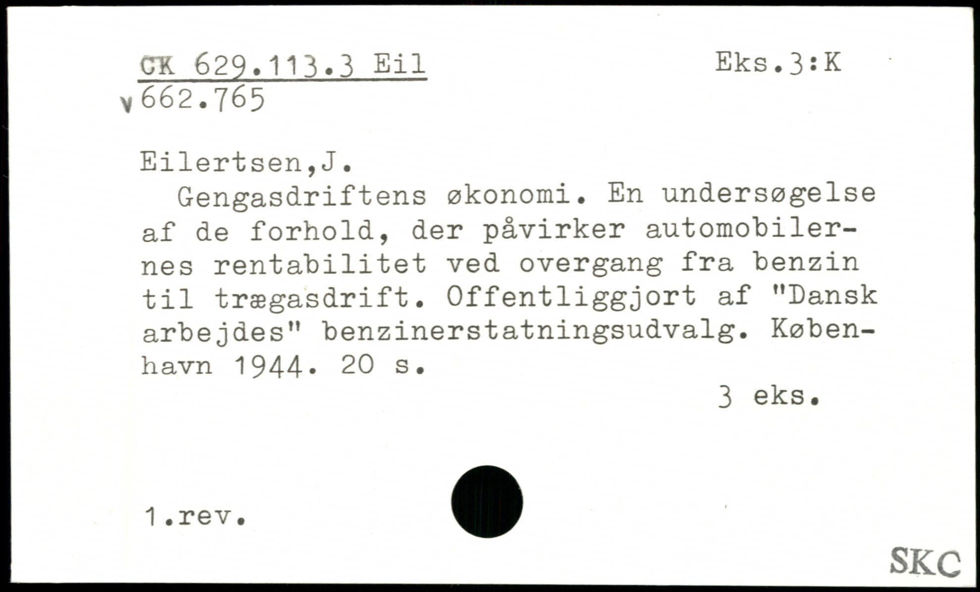 Gengasdriftens økonomi. En undersøgelse af de forhold, der påvirker automobilernes rentabilitet ved overgang fra benzin til trægasdrift. Offentliggjort af "Dansk arbejdes" benzinerstatningsudvalg.