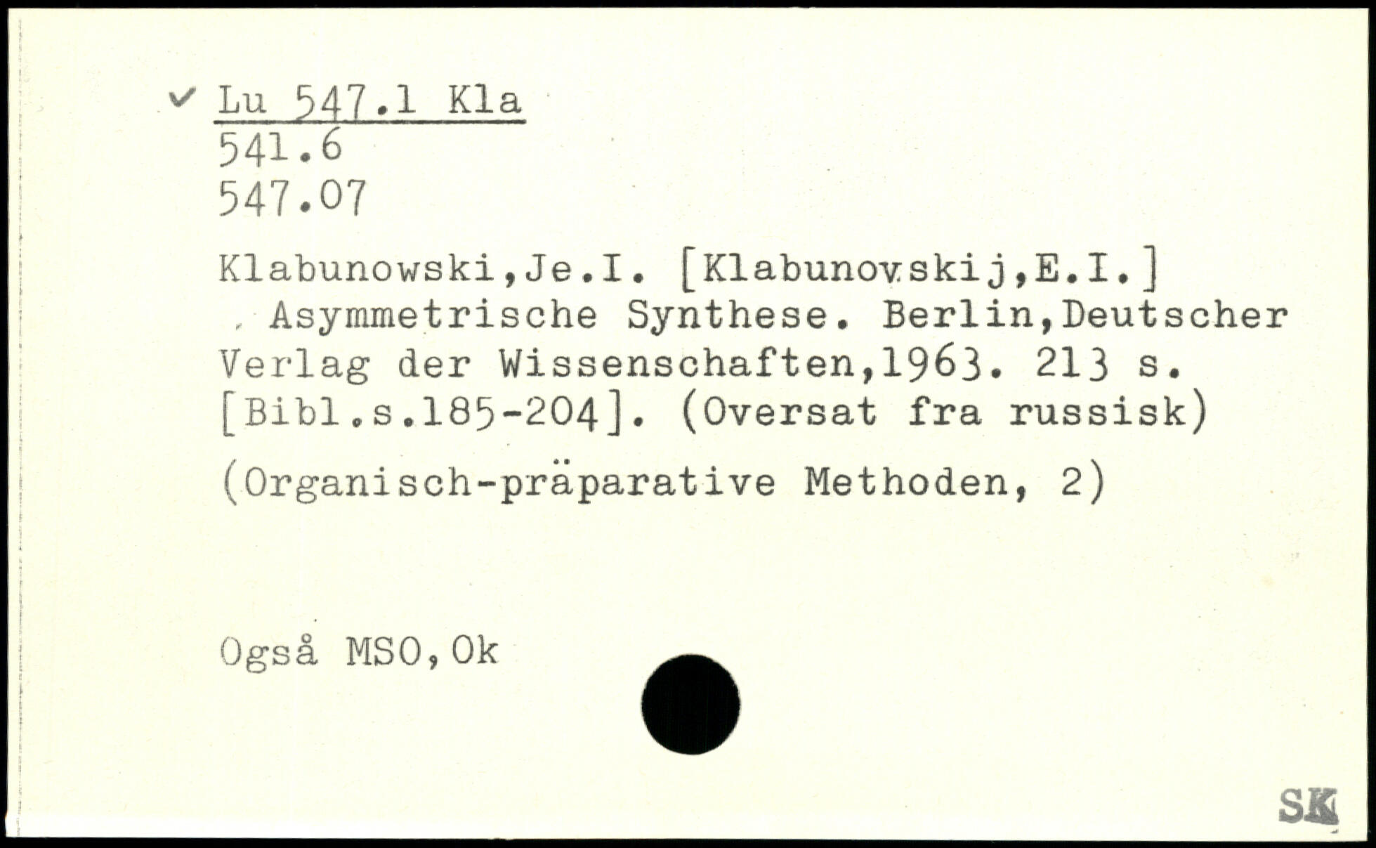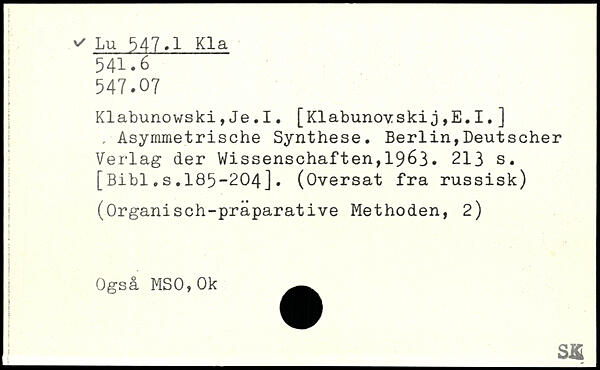 Klabunowski,Je.I. [Klabunovskij,E.I.] , Asymmetrische Synthese.