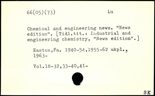 Chemical and engineering news. "News edition". [Tidl.tit.: Industrial and engineering chemistry, "News edition".] Easton,Pa. 1940-54.1955-62 ukpl.? 1963-
