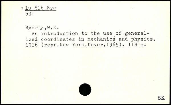 An introduction to the use of generalized coordinates in mechanics and physics. 1916 (repr.