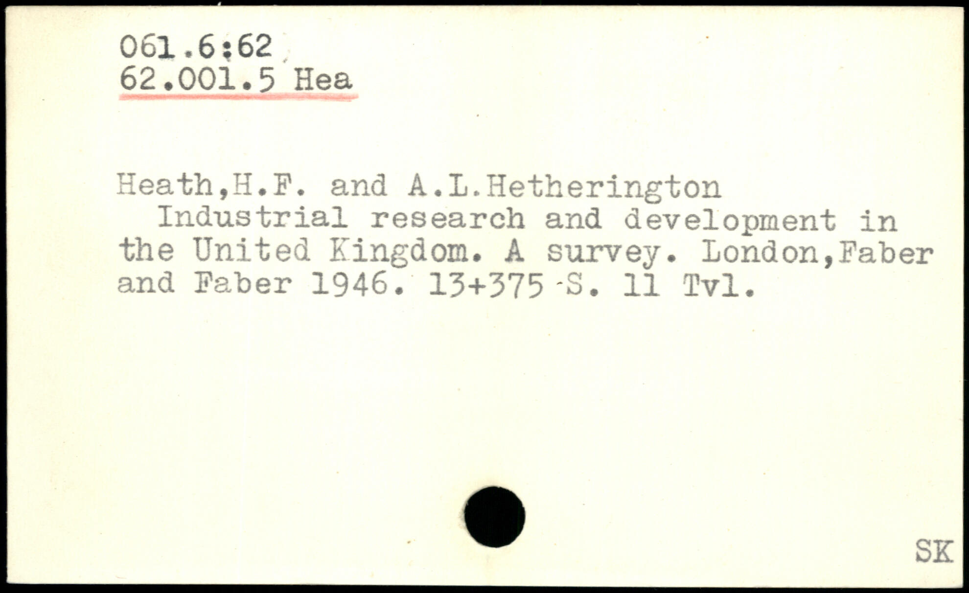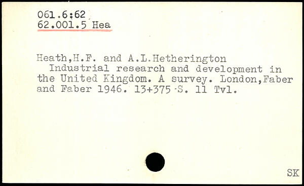 Heath,H.F. and A.l.Hetherington Industrial research and development in the United Kingdom. A survey. London,Faber and Faber 1946. 13+375 -S. 11 Tvl.