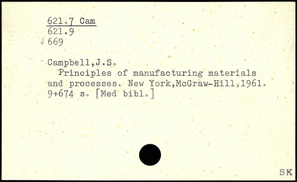 Principles of manufacturing materials and processes. New York,McGraw-H11191961