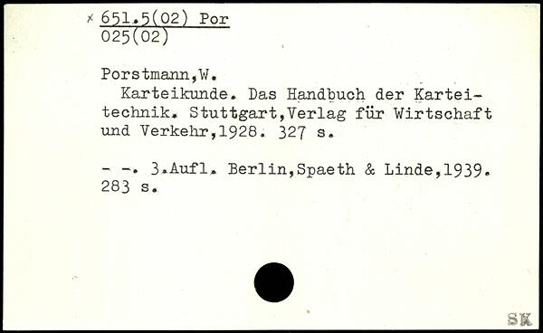 Karteikunde. Das Handbuch der Karteitechnik, Stuttgart,Verlag für Wirtschaft und Verkehr,1928.