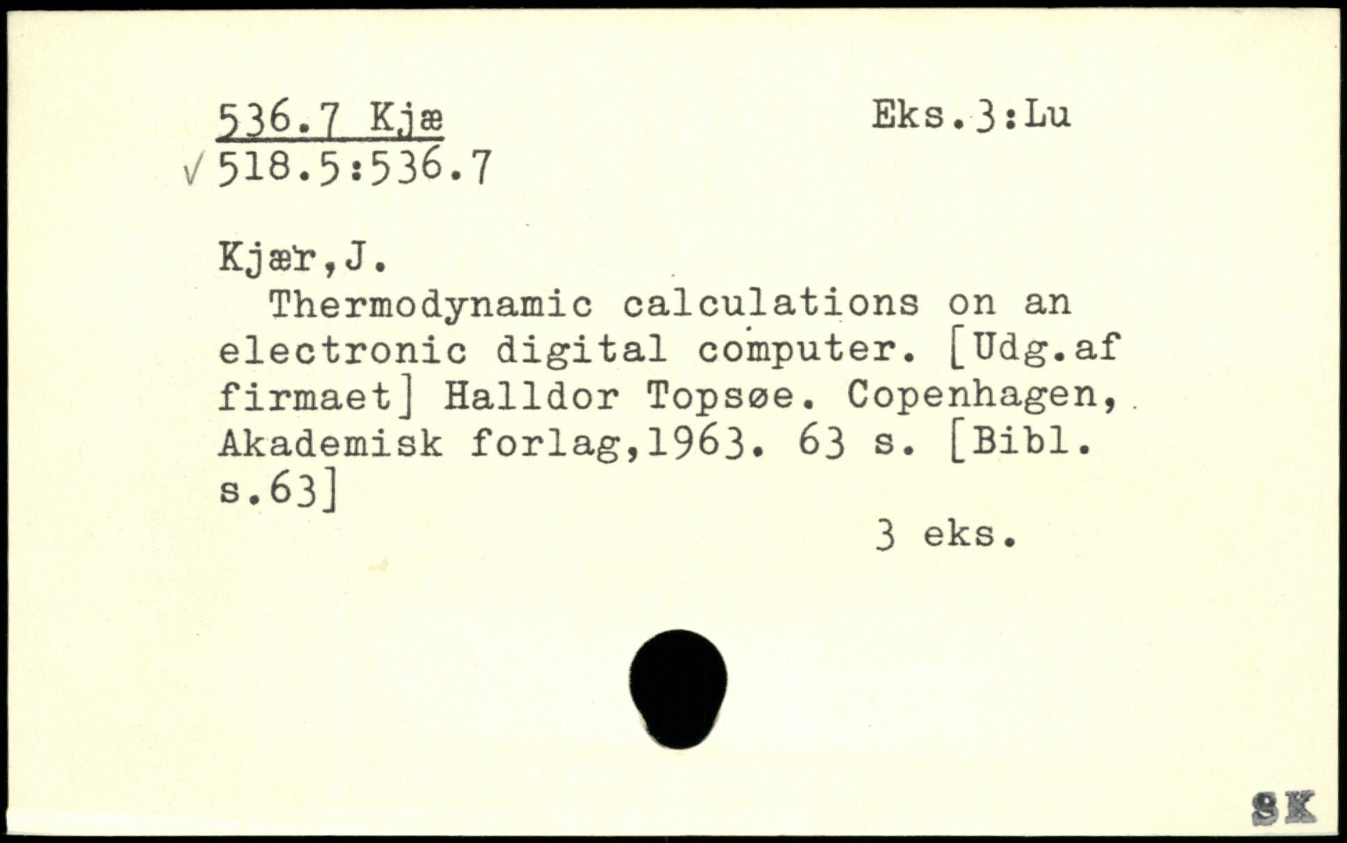 Thermodynamic calculations on an electronic digital computer. [Udg.af firmaet] Halldor Topsøe.