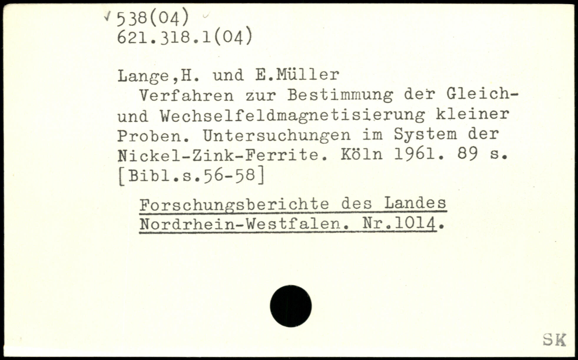 Verfahren zur Bestimmung der Gleich-und Vechselfeldmagnetisierung kleiner Proben. Untersuchungen im System der Nickel-Zink-Ferrite.