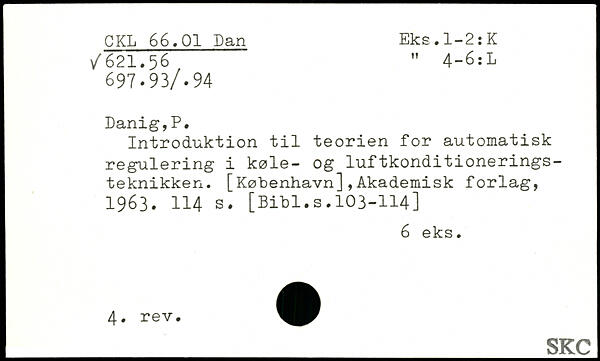 Introduktion til teorien for automatisk regulering i køle- og luftkonditionerings-teknikken. [København],Akademisk forlag, 1963.