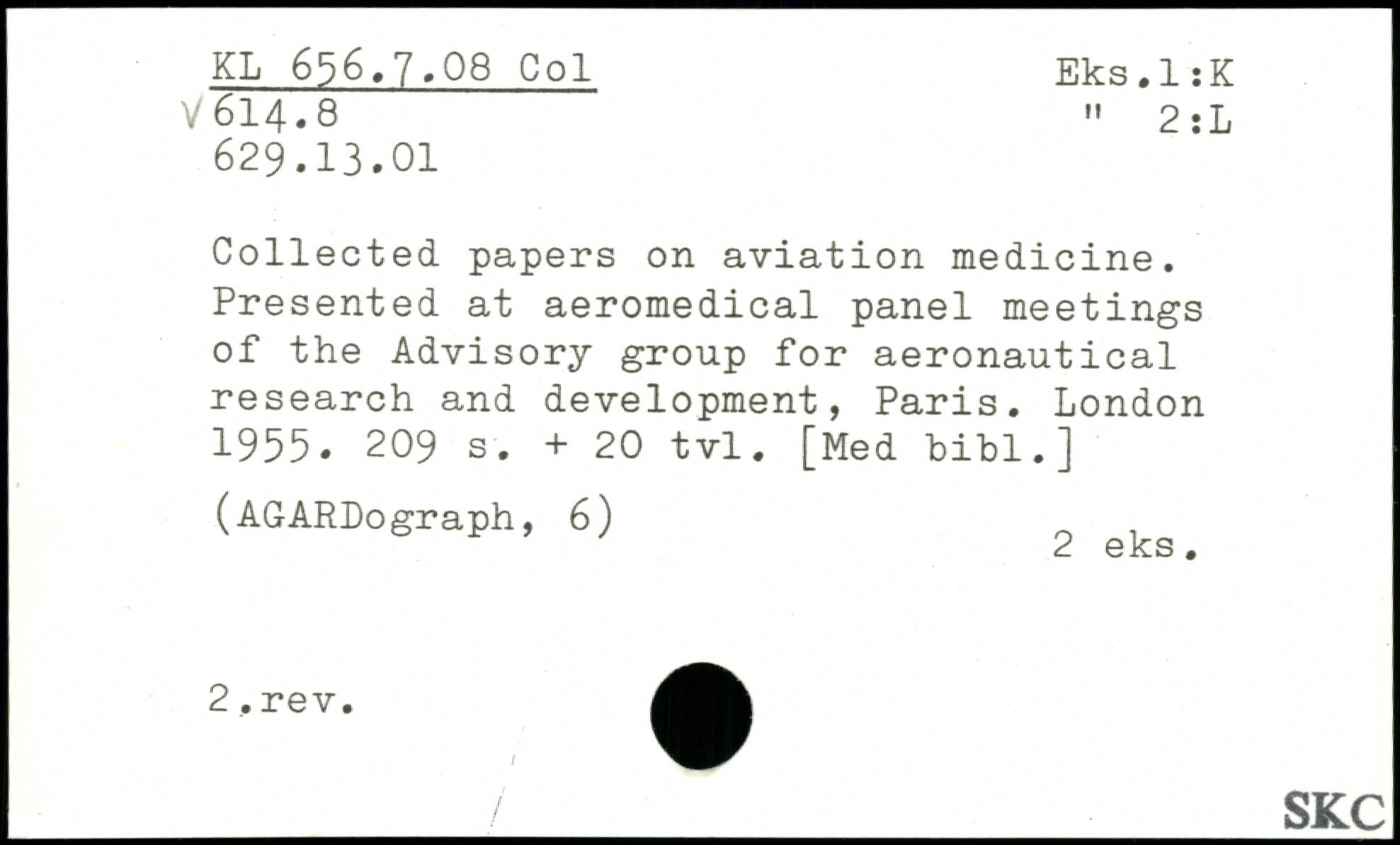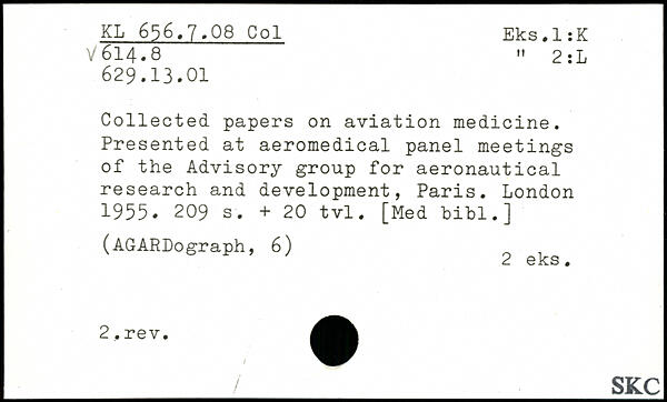 Collected papers on aviation medicine. Presented at aeromedical panel meetings of the Advisory group for aeronautical research and development, Paris.