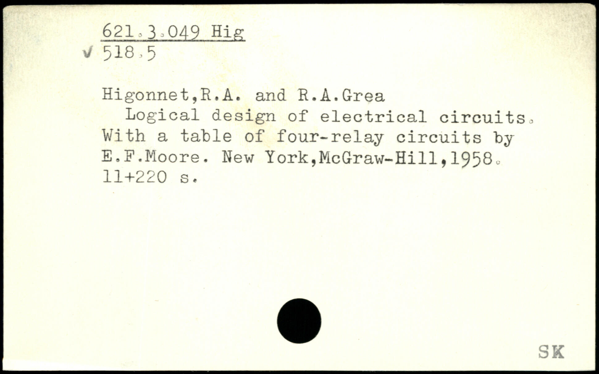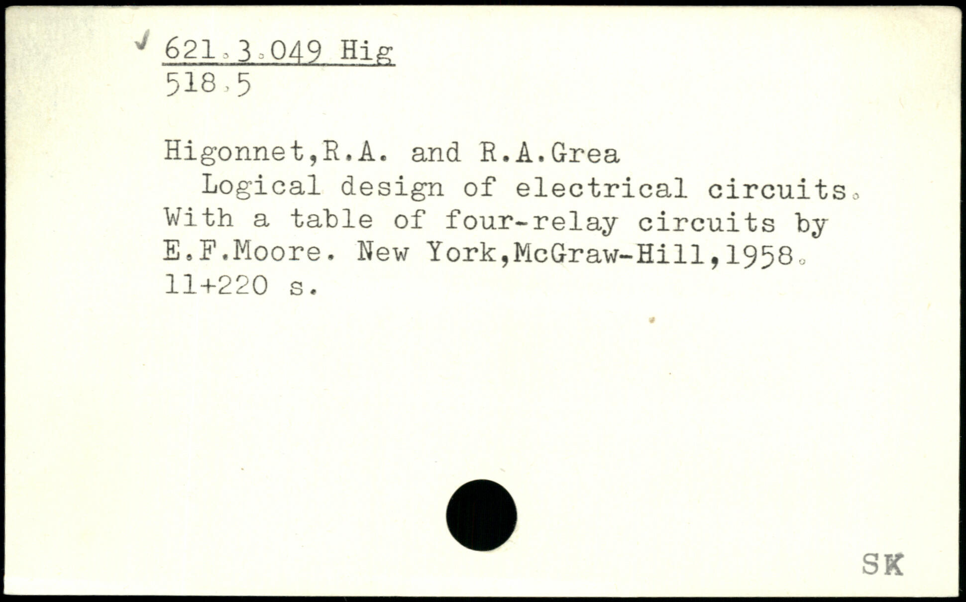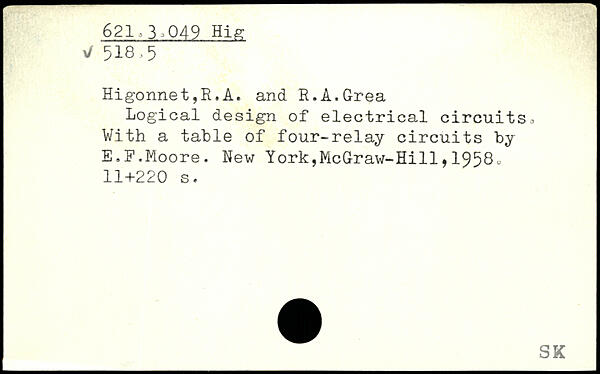 Logical design of electrical circuits. With a table of four-relay circuits by E.F.Moore.