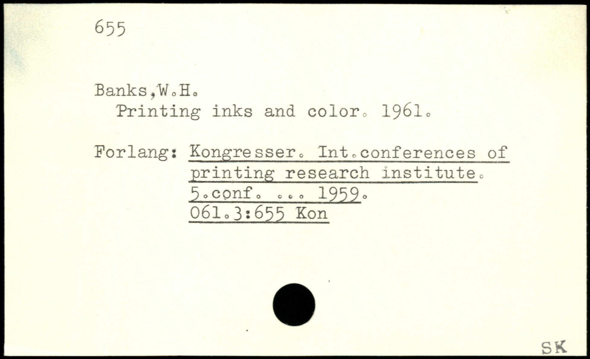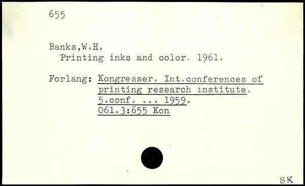 Printing inks and color0 19610 Forlang: Kongresser. Intoconferences of printing research institutec 5. cpnfo ,,, o 1959. O6lo3:655 Kon _K