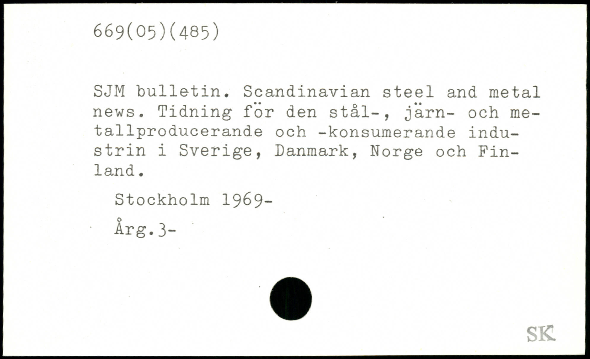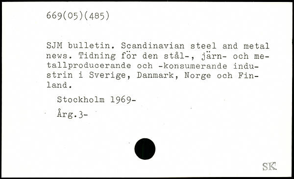 SJM bulletin. Scandinavian steel and metal news. Tidning för den stål-, järn- och me-tallproducerande och -konsumerande industrin i Sverige, Danmark, Norge och Finland.