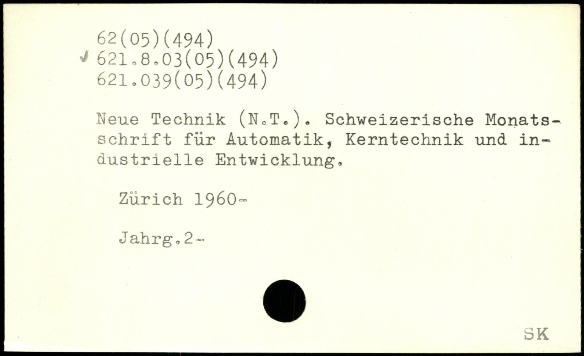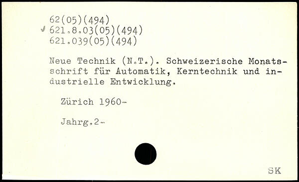 Neue Technik (N0T.). Schweizerische Monats-Schrift für Automatik, Kerntechnik und in- dustrielle Entwicklung-, Zürich 1960, Jahrg,2-