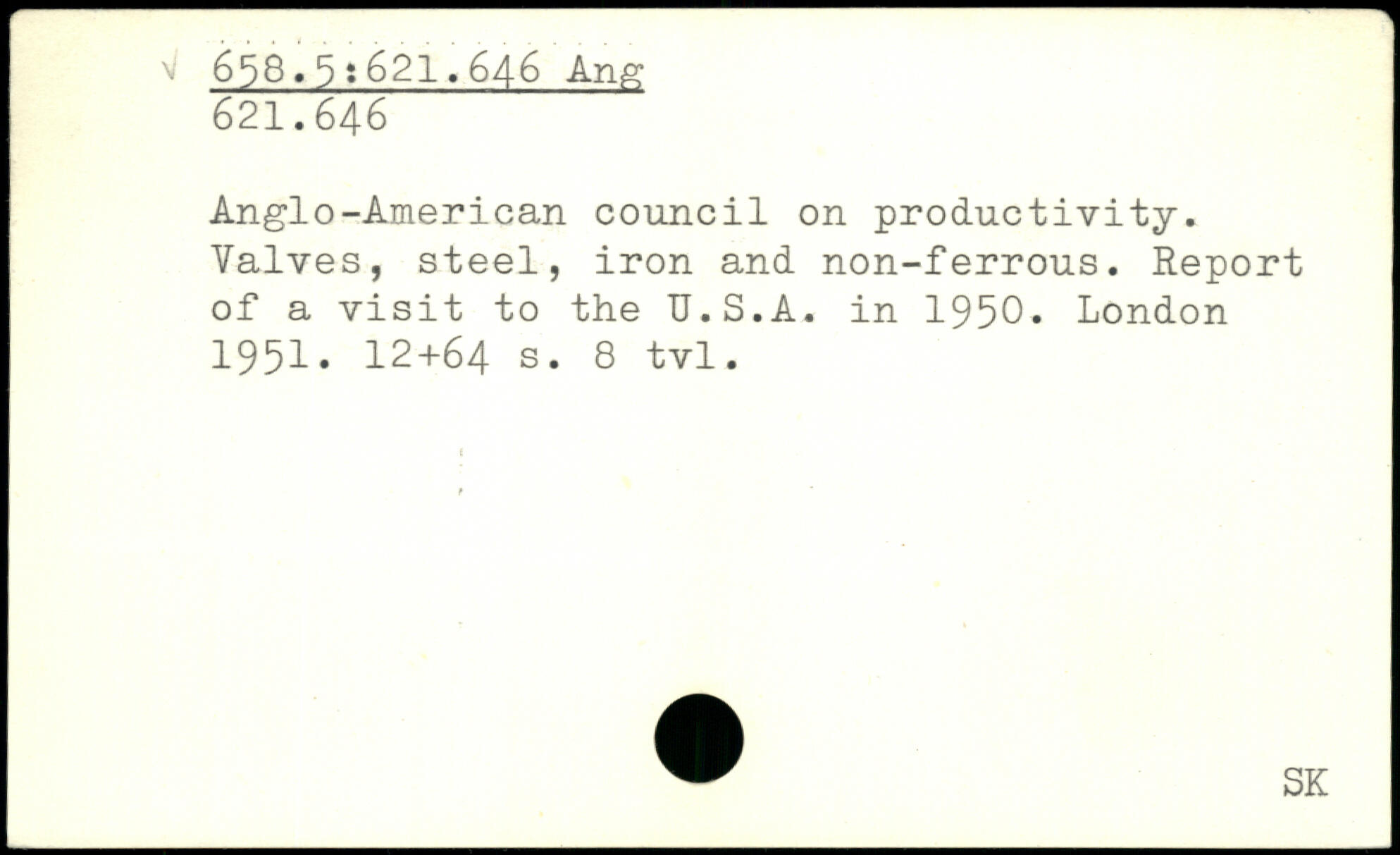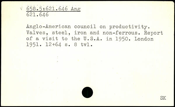 Anglo-American council on productivity. Valves, steel, iron and non-ferrous. Report of a visit to the TJ.S.A. in 1950.