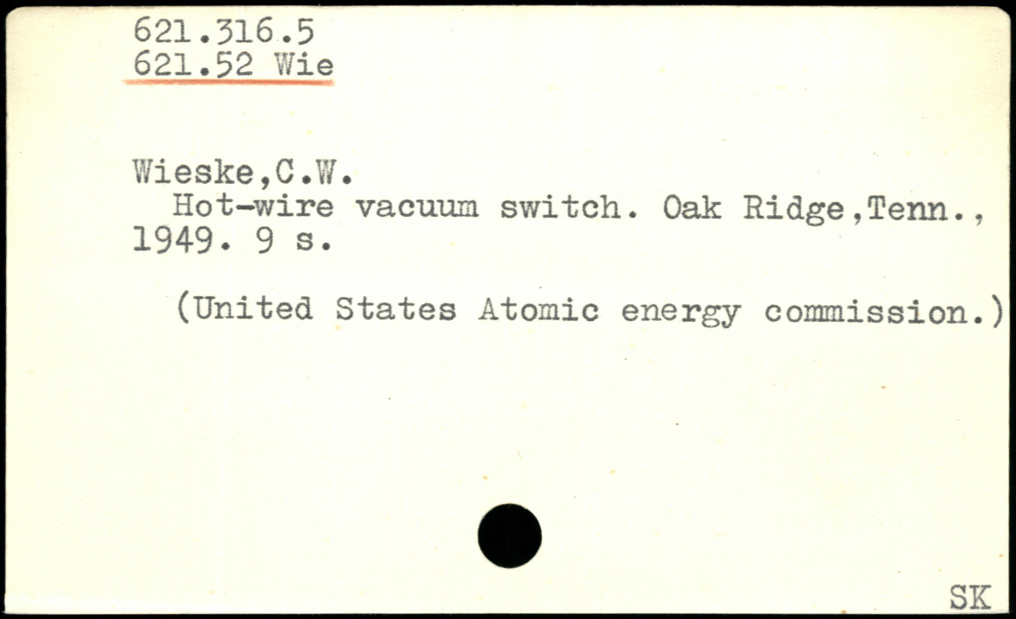 Hot-wire vacuum switch. Oak Ridge,Term. ? 1949.