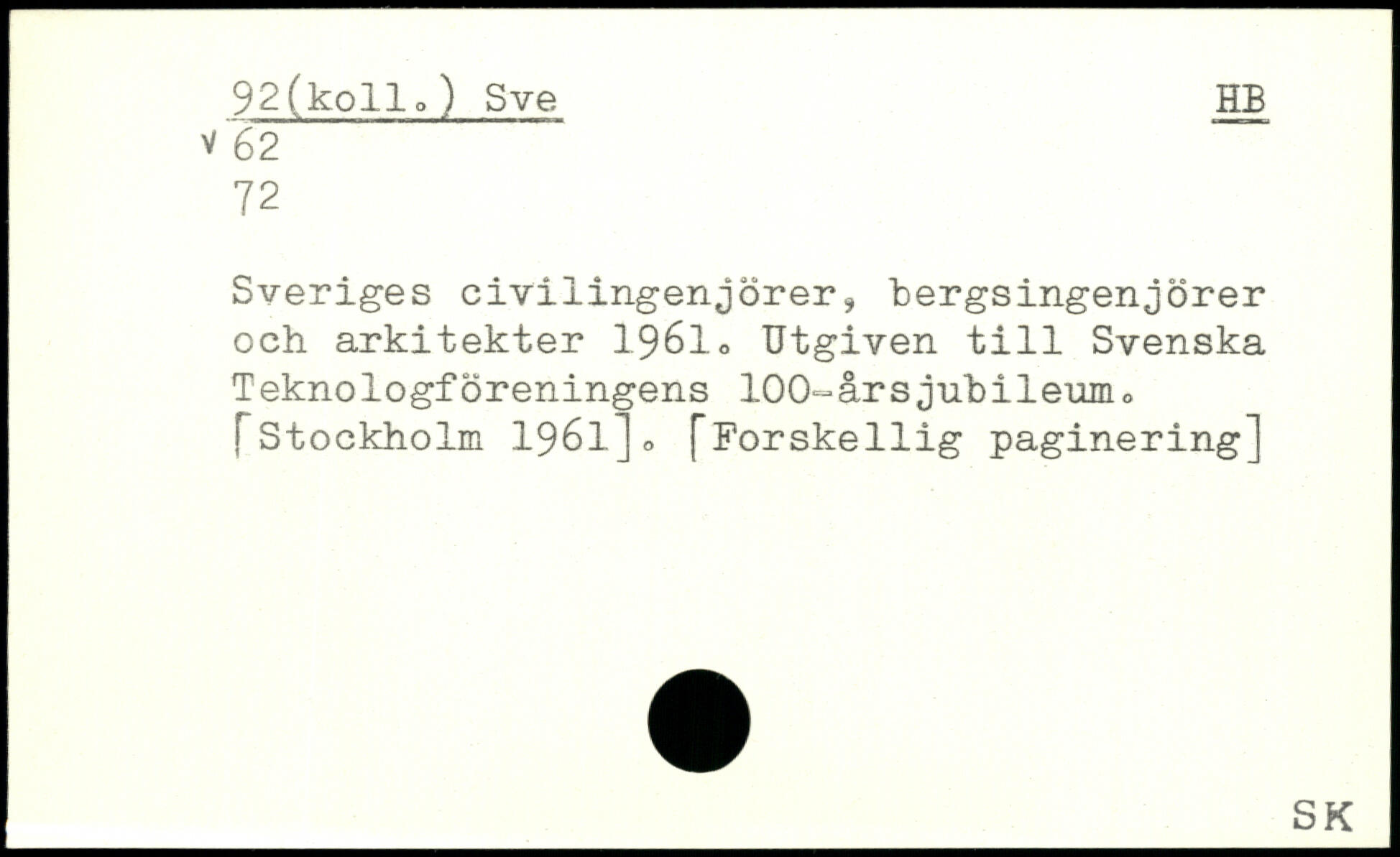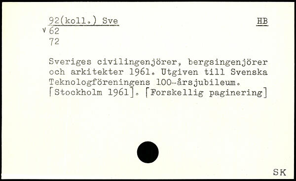 Sveriges civilingenjörer, bergsingenjörer och arkitekter 19610 Utgiven till Svenska Teknologf öreningens 100-års jubileum, r