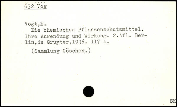 Die chemischen Pflanzenschutzmittel. Ihre Anwendung und Wirkung. 2.Afl. Berlin, de Gruyter,1936.