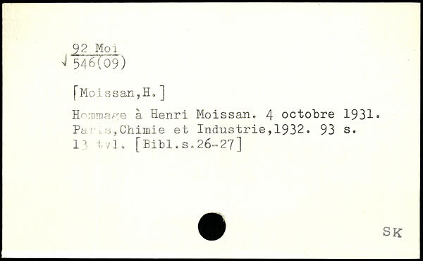 f Moissan,H.] H':nma^e à Henri Moissan. 4 octobre 1931, Pa '.j,Chimie et Industrie, 1932.