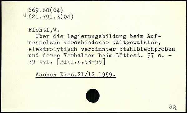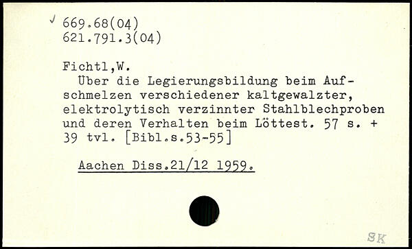 tllier die Legierungsbildung beim Auf-schmelzen verschiedener kaltgewalzter, elektrolytisch verzinnter Stahlblechproben und deren Verhalten beim Löttest.