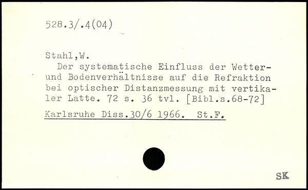 Der systematische Einfluss der Wetterund Bodenverhältnisse auf die Refraktion bei optischer Distanzmessung mit vertikaler Latte.
