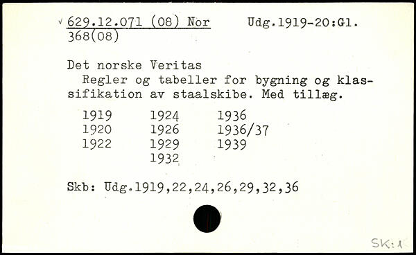 Det norske Veritas Regler og tabeller for bygning og klassifikation av staalskibe. Med tillæg. 1919 1924 1936 1920 1926 1936/37 1922 1929 1939