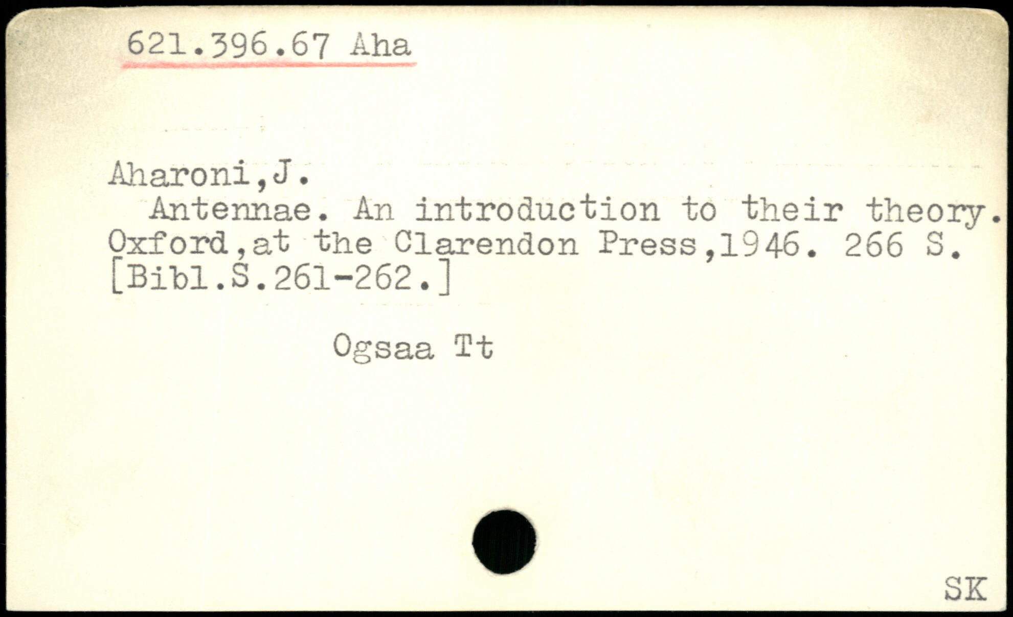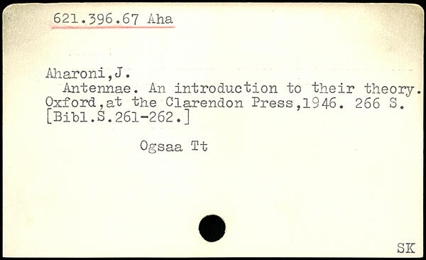 Antennae. An introduction to their theory. Oxford,at the Clarendon Press,1946.
