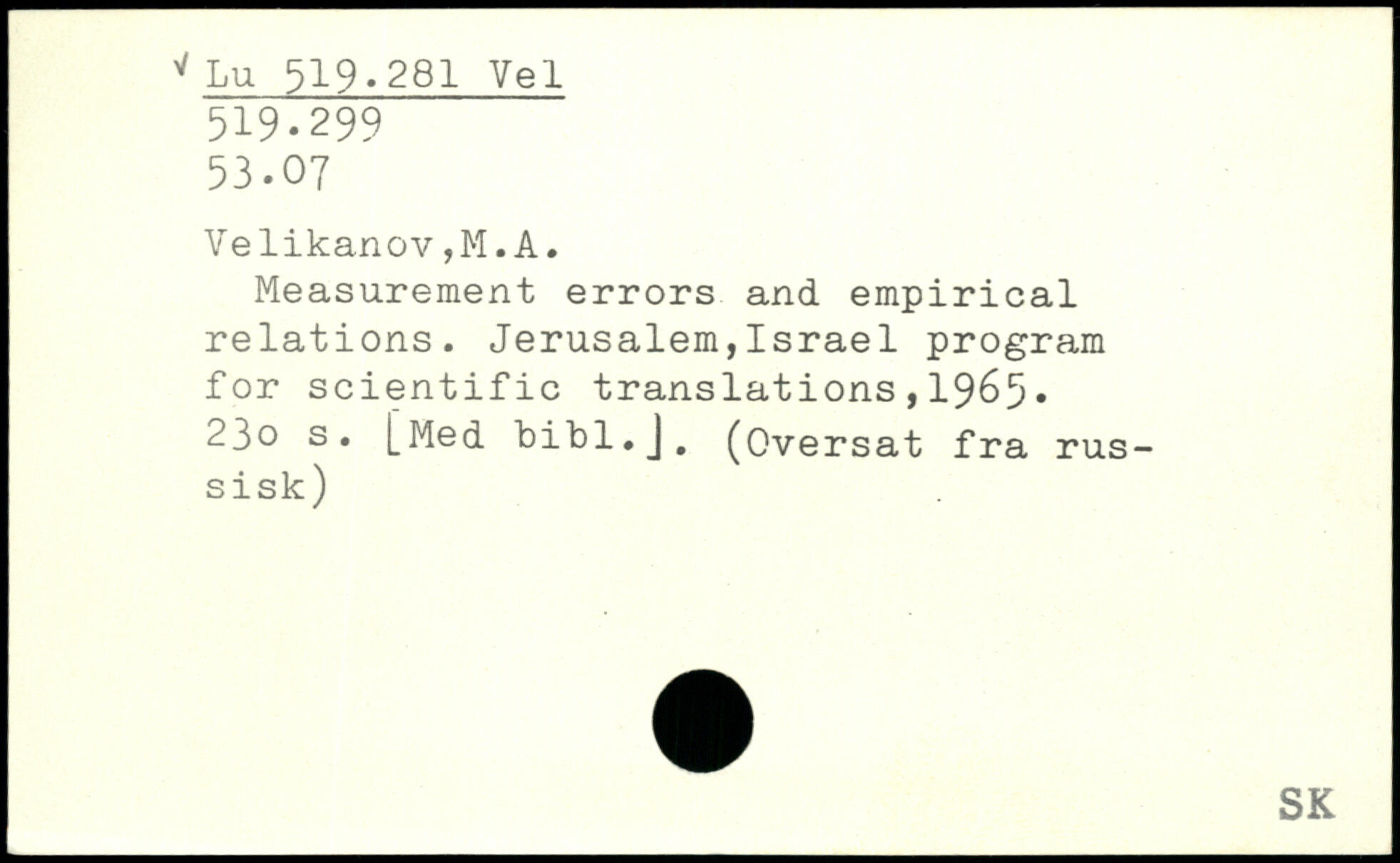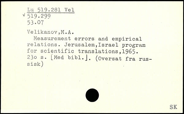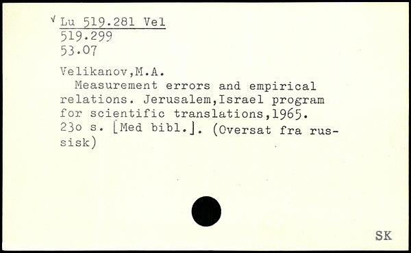 Measurement errors and empirical relations. Jerusalem,Israel program for scientific translations,1965. 23o s. [Med bibl.J. (Oversat fra russisk)