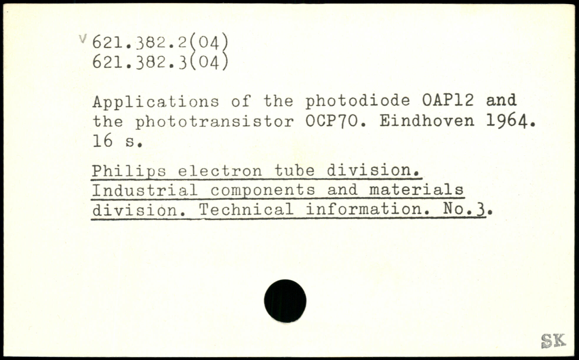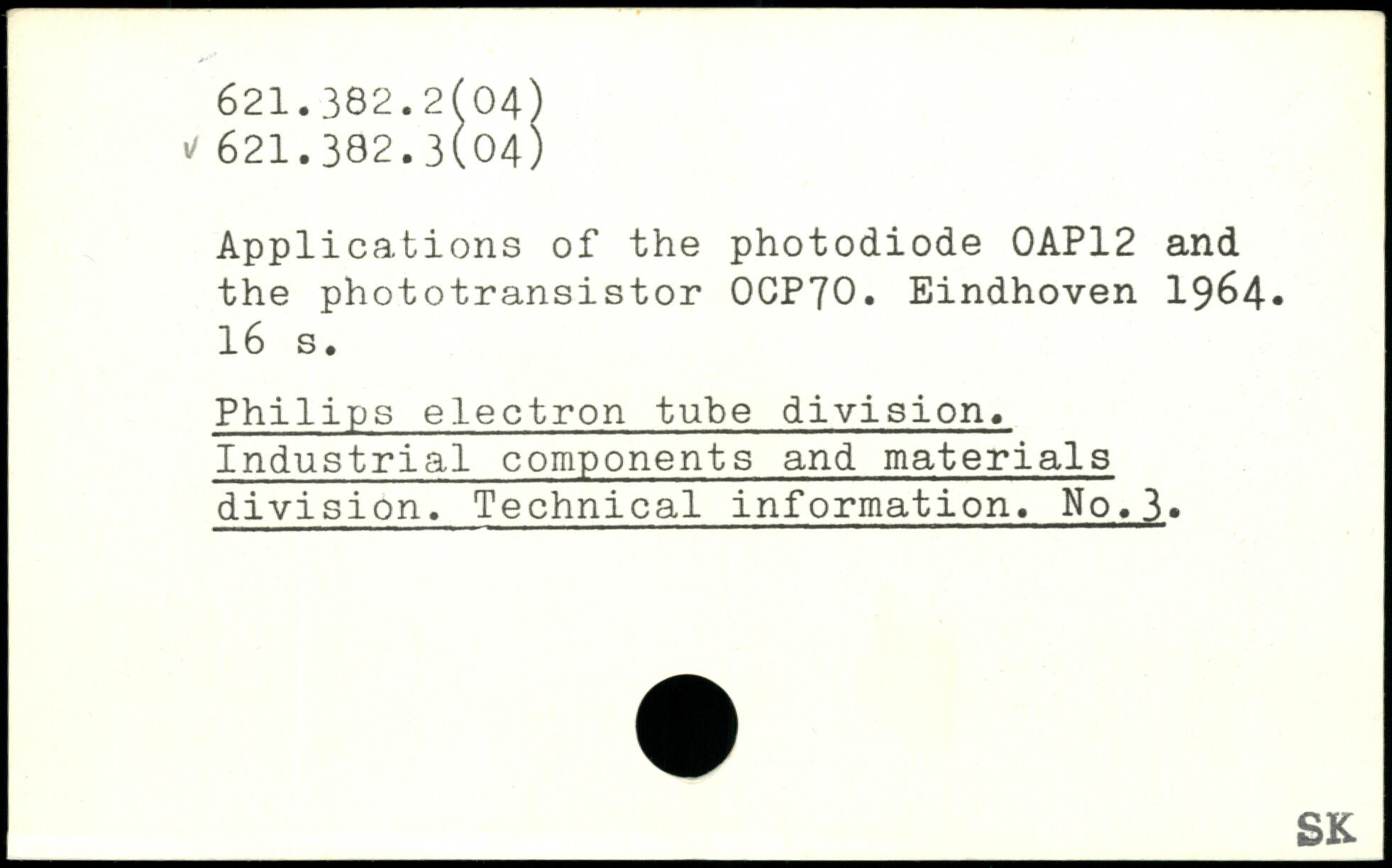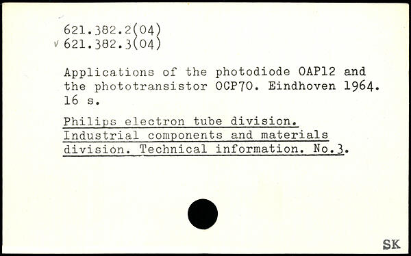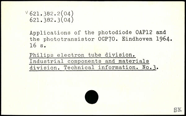Applications of the photodiode 0AP12 and the phototransistor 0CP70. Eindhoven 1964.