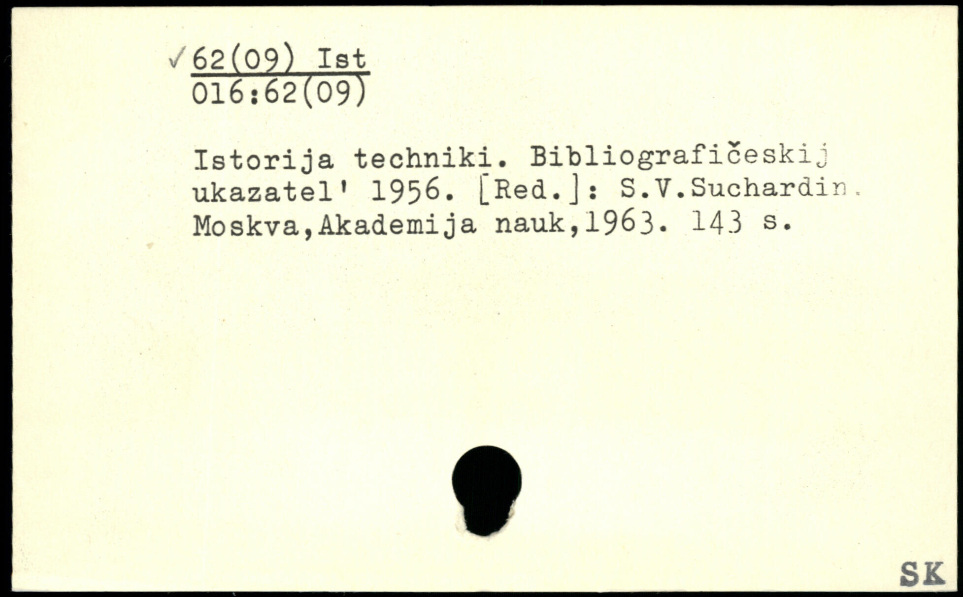 Istorija techniki. Bibliograficeskij ukazatel1 195^. [Hed.Jî S.V.