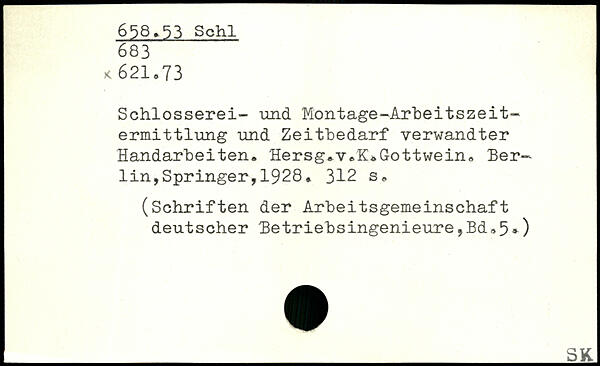 Schlosserei- und Montage-Arbeitszeitermittlung und Zeitbedarf verwandter Handarbeiten. Hersg.v.K,Gottwein.
