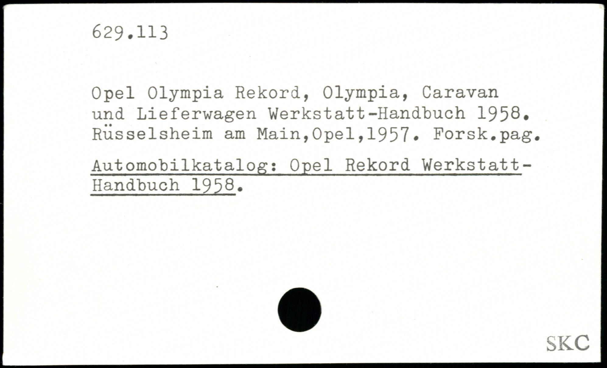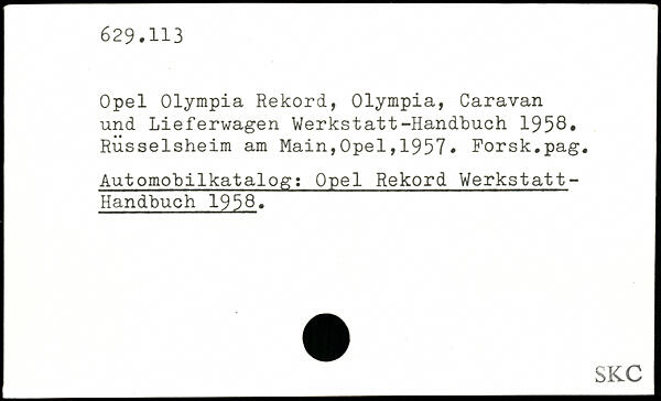 Opel Olympia Rekord, Olympia, Caravan und Lieferwagen Werkstatt-Handbuch 1958.