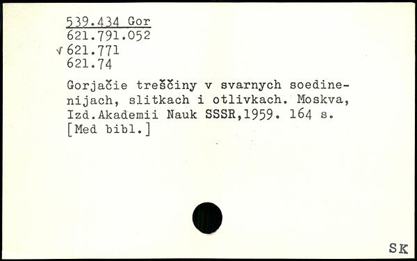 Gorjacie tresciny v svarnych soedine-nijach, slitkach i otlivkach. Moskva, Izd.Akademii Nauk SSSR,1959, I