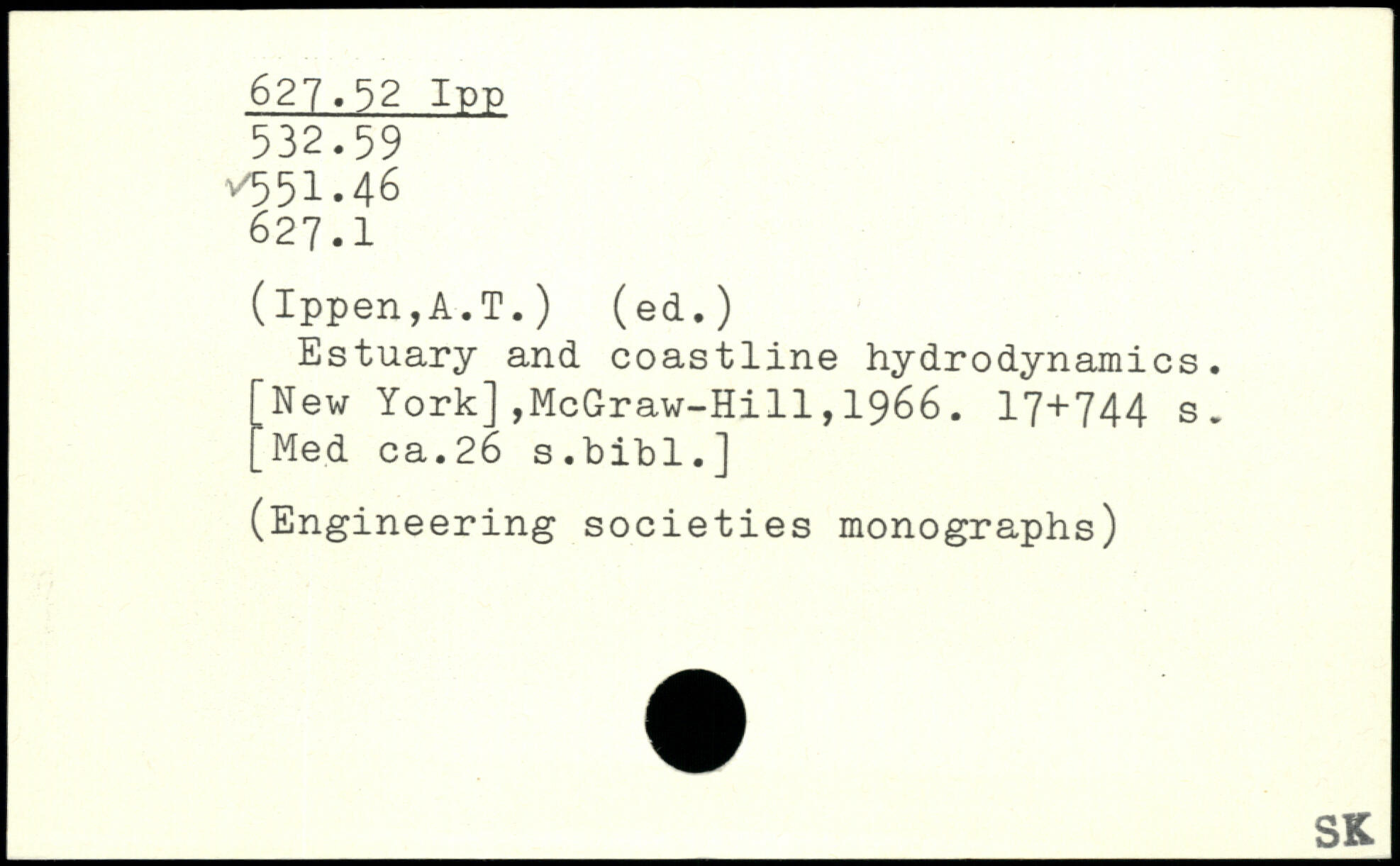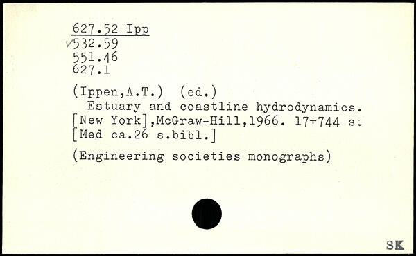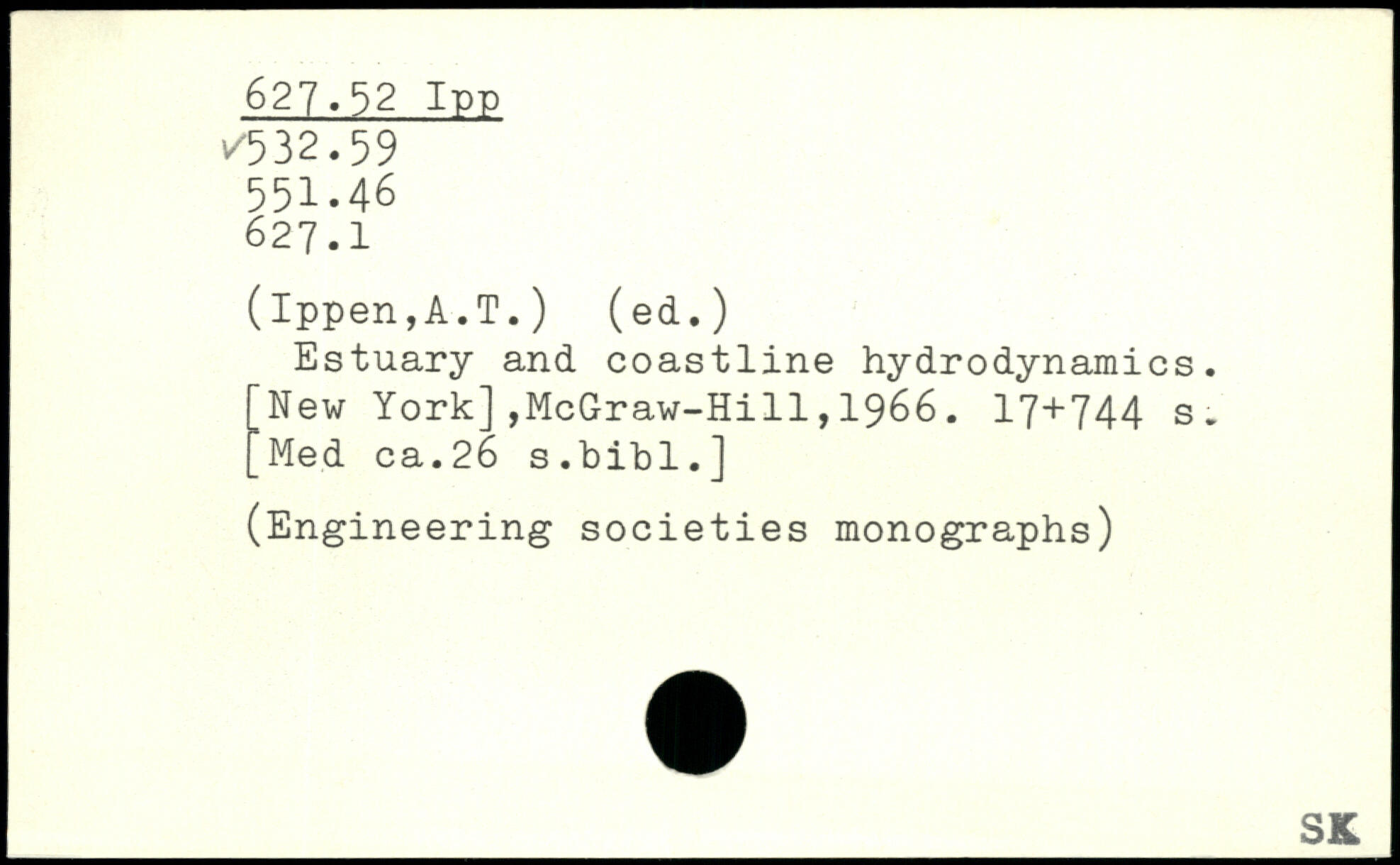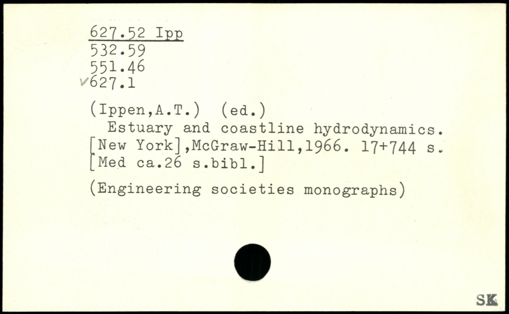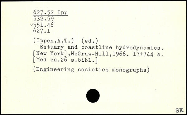 (lppen,A.T.) (ed.) Estuary and coastline hydrodynamics. New York],McGraw-Hill,1966.