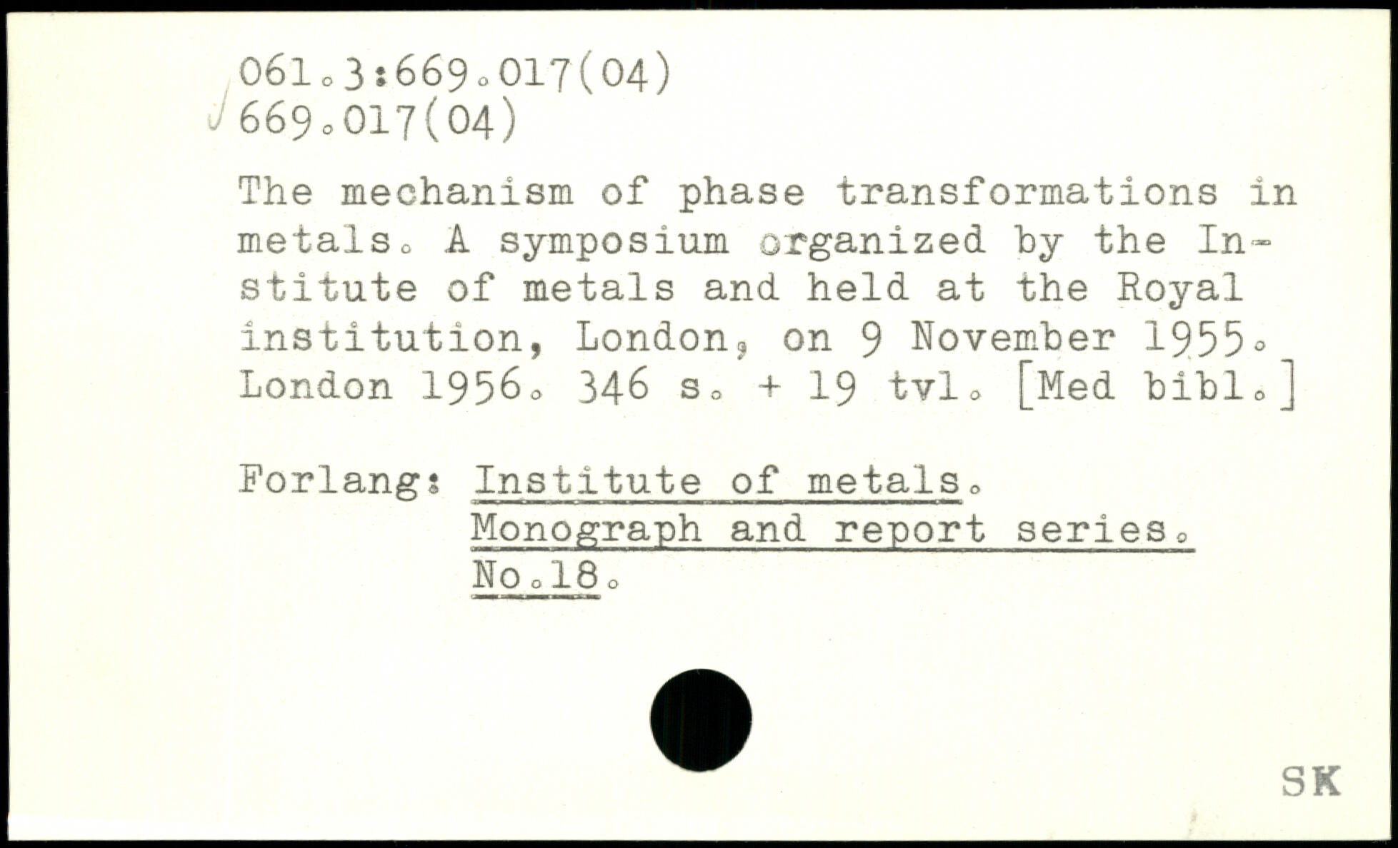 The mechanism of phase transformations in metalso A symposium organized by the Institute of metals and held at the Royal institution, London^ on 9 November 1955^