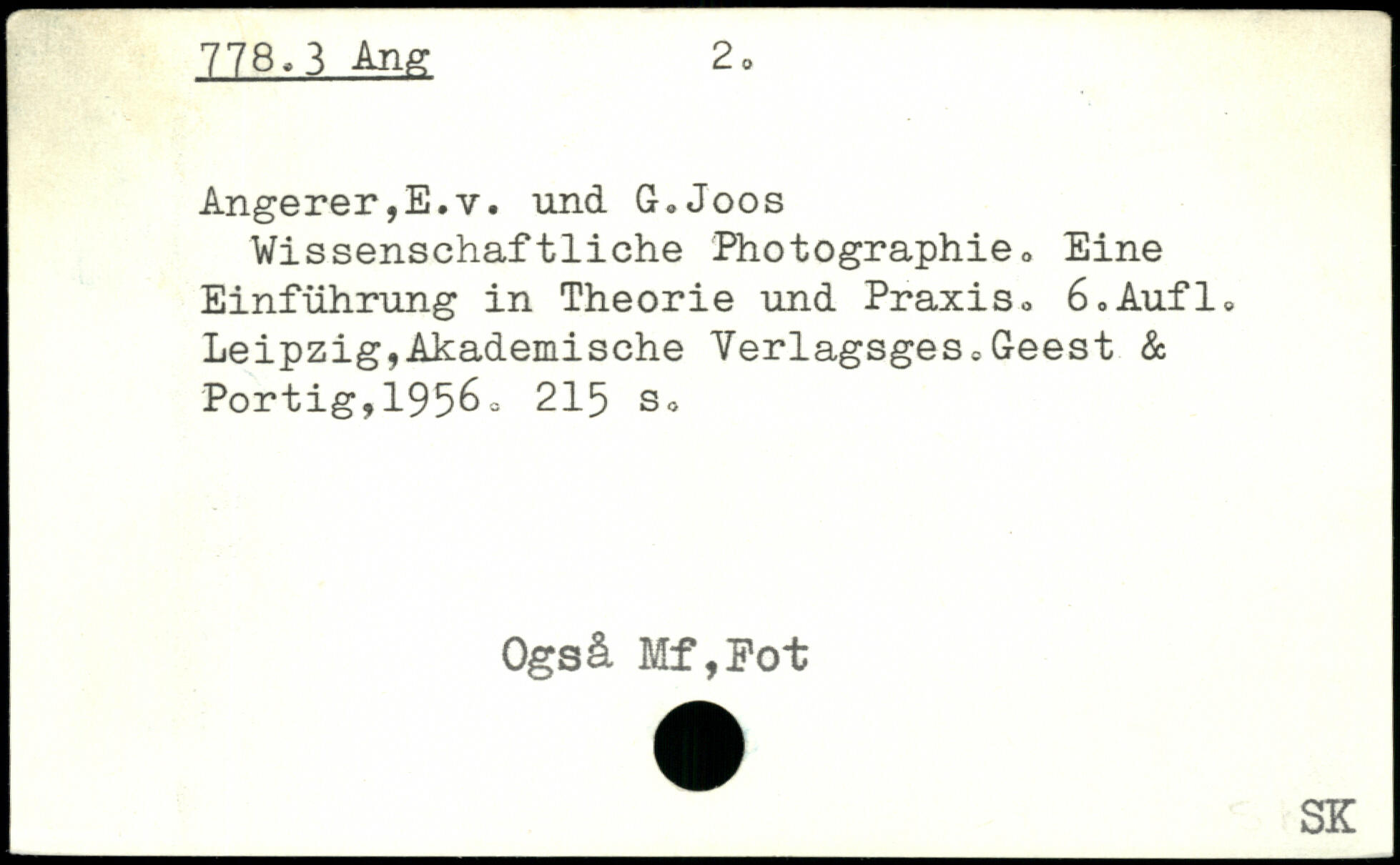 Wissenschaftliche Photographie, Eine Einführung in Theorie und Praxis, 6,Aufl, Leipzig,Akademische Verlagsges,,Geest & Portig,1956o